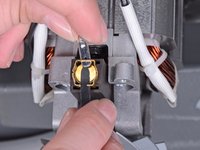 Use a pick or small flathead screwdriver to push down on the tab securing one of the motor's power cable connectors while gently sliding the connector out of its slot.