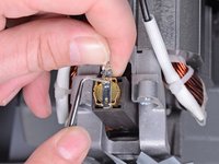 Use a 3 mm hex key to remove the two bolts securing the vacuum motor cover.