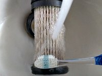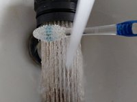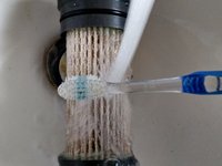 Lightly brush the entire filter with a soft bristled toothbrush under running water.