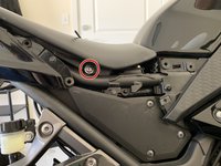 Locate the bolt holding the side seat cover in place and remove it using a 4mm hex key.