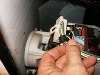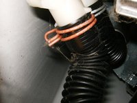 Drain lines from the drum and drain hose are connected to the pump with spring clamps.