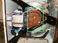 This is a direct drive model. No belts but a motor coupler connects the motor to transmission. Check for any cracks etc.