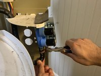 Use the groove joint pliers to remove the hot and cold water hoses in a counter-clockwise rotation.