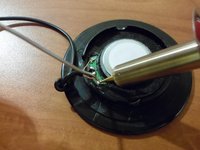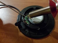After the soldering iron is prepared, place the wires in the correct positions on the speakers.