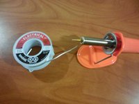 After soldering iron is hot, touch the tip of the soldering iron to the end of the soldering wire. This will "tin" the tip of the soldering iron and will help to create a better solder.