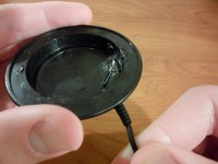Hold the speaker cover in one hand and the speaker ear-padding in the other.
