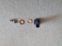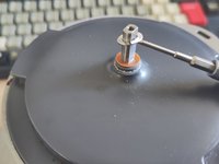 Put the plastic washer onto the shaft, then place the metal washer on top of the plastic washer.
