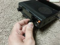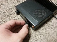 Unscrew the microphone connector from the front panel of the radio, and pull it out.