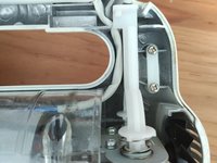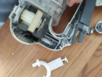 When you pull the motor body out of the casing, the white plastic mechanism here may fly loose, as it has springs under tension.