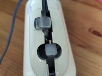 There are two catches holding the case together, at the front and at the bottom near the beaters. Be careful not to break these, you can try pulling the right side of the mixer slightly forward as you pry apart.