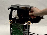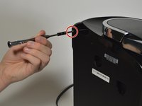 Use the Phillips #1 screwdriver to remove the 120mm screw located on the top left corner from the side of the brewer where the water reservoir was.