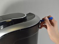 Remove the entire back exterior surrounding the Keurig by removing the latches connecting the back exterior to the silver frame on top. To do this, use the metal spudger to lift the latches up and out.