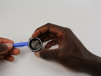 This circular screen has a rubber "O"-ring around the base. Use the plastic opening tool to pry off the rubber seal. Replace with undamaged seal.