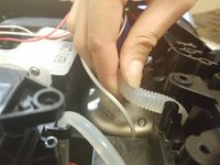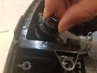 • Lift the tube, connected to the tank, off the black plastic hook and leave it off to the side of the hook.