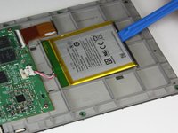 Use the plastic opening tool to pry the battery from the backside of the screen.