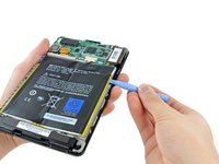 Pry the case apart and run the plastic opening tool along the perimeter of the Kindle Fire to release the clips securing the case halves to each other.