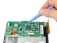 Lever the top side of the motherboard up with a plastic opening tool until it comes free.