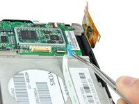 Use the flat end of a spudger to peel up the silver tape securing the antenna cable.