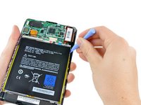 Fit the tip of the plastic opening tool between the right battery cell and the Kindle Fire's frame.