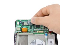 Lift the motherboard out of the Kindle Fire, making sure that the power button cable from step 8 comes free from its connector.