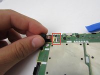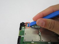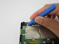Gently flip over the black latch with the iFixit opening tool. Disconnect the camera's connector to the circuit board.