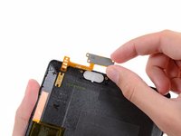 The volume buttons come out easily enough, once we liberate the volume bracket from the rear case.