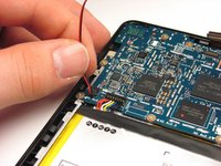 Unclip the speaker wire that runs up the side of the battery and clips into the motherboard next to the battery connector. Gently pull it straight up.