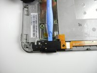 Insert a large plastic opening tool next to the Kindle's headphone jack.