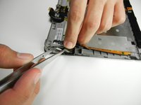 Holding the display assembly near the camera, carefully open the display assembly up to about 90 degrees from the rear case.