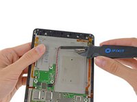 The last of the Voyage's bonus features live under the display glass. After an off-screen iOpener application, we're ready to pry through some glue.