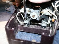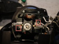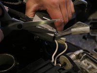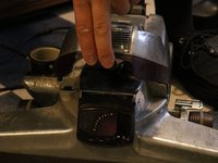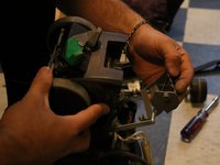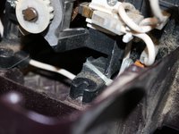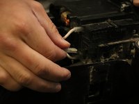 Using the Phillips screwdriver, undo the two screws shown on the front of the black plate and pull out the wires being held within it, carefully.