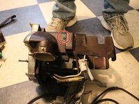 Once the screws are removed, pull back on the plastic black tab and all attached parts will come off.