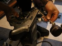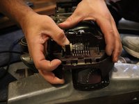 Using a Phillip's head screwdriver, undo the screws on the backside of the vacuum