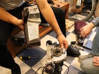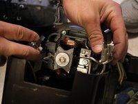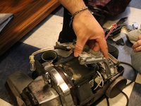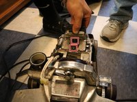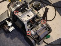 Undo the screws located on the bottom of the completely black piece of the vacuum. One will disconnect the wires you find while this step is being completed.