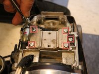 Using the T-20 bit, undo the smaller screws located in the same area.