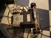 Undo screws on underside of the vacuum. These screws are the joint connection that are holding the wheels and axel to the vacuum.