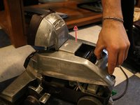 Twist the large knob on the front of the vacuum, and pull the entire front nose off. If it does not seem to easily come off, this just means there is a little bit of grease creating a seal in between the fibers of the vacuum.
