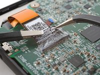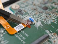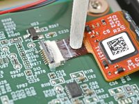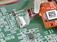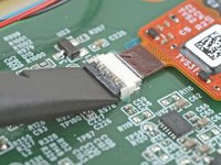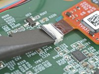 Lift up the display cable and peel off any remaining coating holding it to the motherboard.