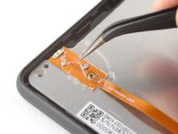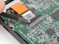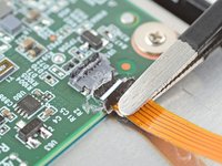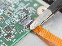Use blunt nose tweezers to grip the corner of the display cable closest to the charging port.
