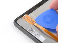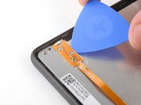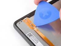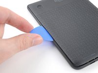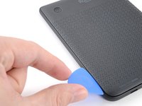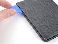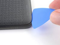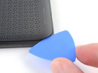 Insert the flat edge of an opening pick between the frame and the bottom left corner of the back cover.