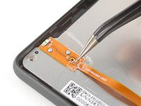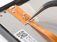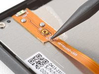 Insert an arm of pointed tweezers under the edge of the power button board that you separated the coating from.