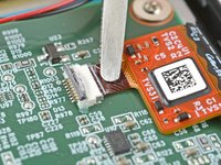 Insert the flat end of a spudger under the right side of the ZIF connector's black locking tab.