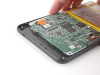 Insert the flat edge of an opening pick between the frame and the bottom left corner of the back cover.