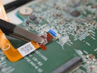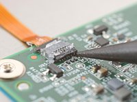 Once the cable comes completely out of its socket, lift it up and peel off any remaining coating holding it to the motherboard.