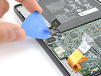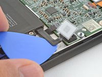 Slide an opening pick under the top left corner of the motherboard and lift it up enough to grip it with your fingers.