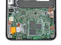 Use a Phillips screwdriver to remove the three 2.4 mm‑long screws securing the motherboard.