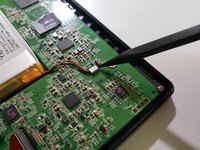 Using the pointed end of your spudger, while holding your eReader using your other hand or a weight, disconnect the battery.
