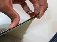 Using the flat end of your spudger and a pair of flat-bladed tweezers, disconnect the display.