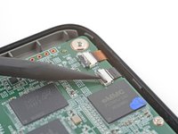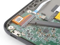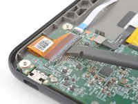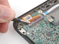 Use blunt nose tweezers to grip the corner of the display cable closest to the charging port.