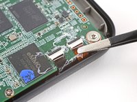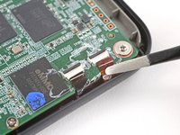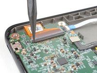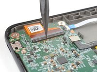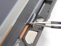 Insert the tip of an opening pick under a corner of the power button board.